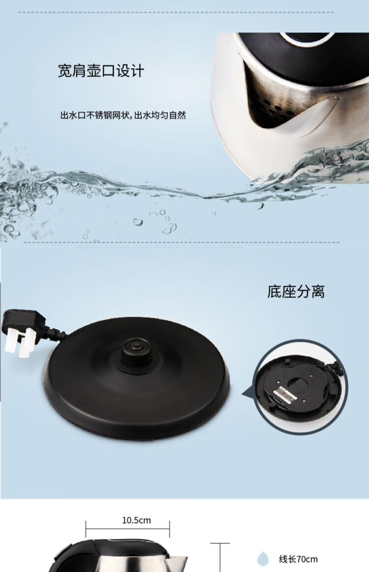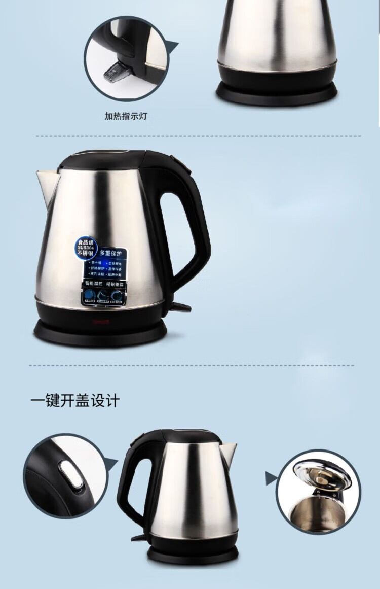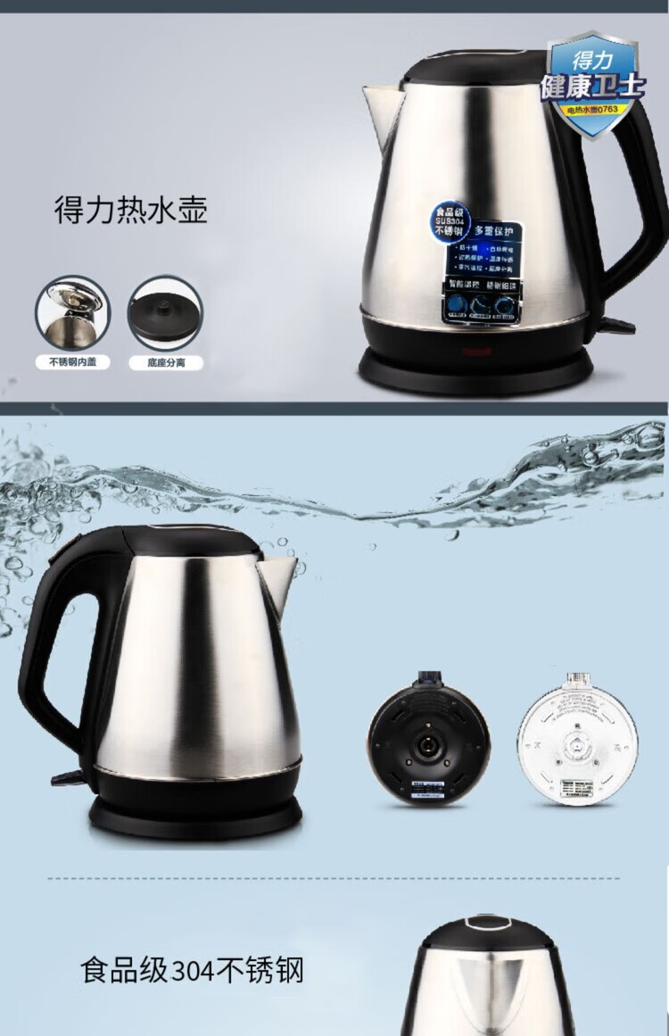 商品名稱:得力0763 電熱水壺 開水壺單層304不銹鋼燒水壺泡茶燒水壺1.5L 銀色