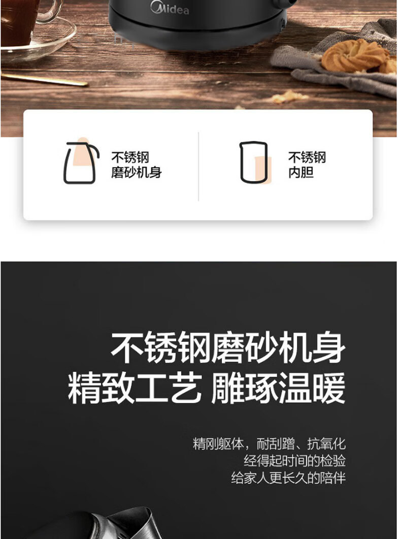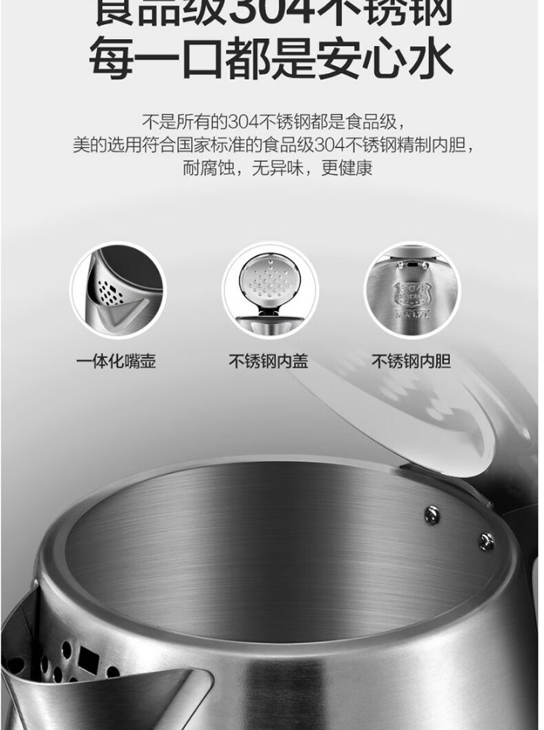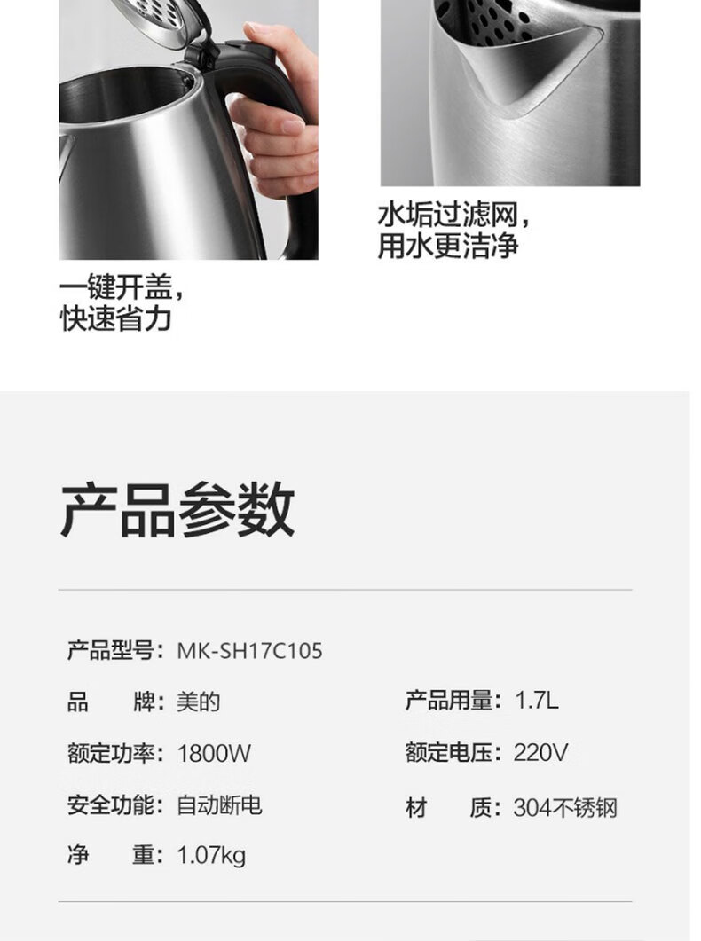 商品名稱(chēng):美的SH17C105 電熱水壺 燒水壺家用304不銹鋼大容量辦公室宿舍自動(dòng)斷電開(kāi)水壺 1.7L