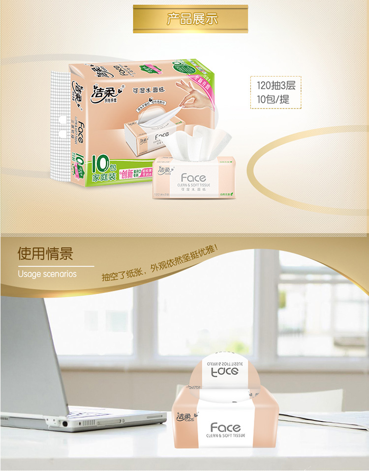 商品名稱:潔柔 抽紙 粉Face柔韌3層120抽*10包 可濕水面巾紙 100%原生木漿