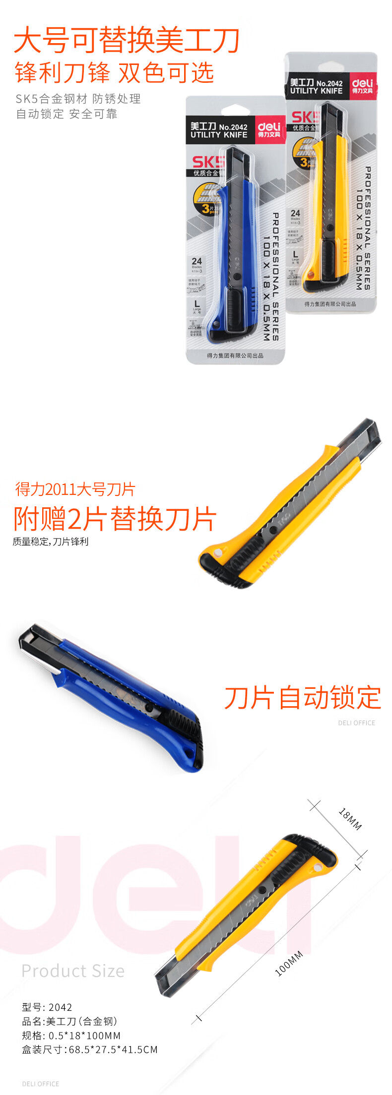 商品名稱:得力2042 美工刀 小號(hào)金屬美工刀裁紙刀 顏色隨機(jī)