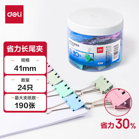 商品名稱:得力8552S 省力長(zhǎng)尾夾 2#41mm大號(hào)彩色金屬票夾燕尾夾票據(jù)文件夾子 辦公用品 24只/筒