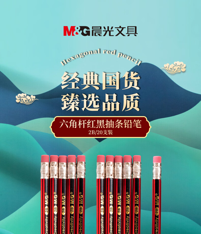 商品名稱:晨光AWP30804 2B鉛筆 20支紅黑抽條六角木桿鉛筆 學(xué)生書寫美術(shù)素描繪圖木質(zhì)鉛筆帶橡皮頭