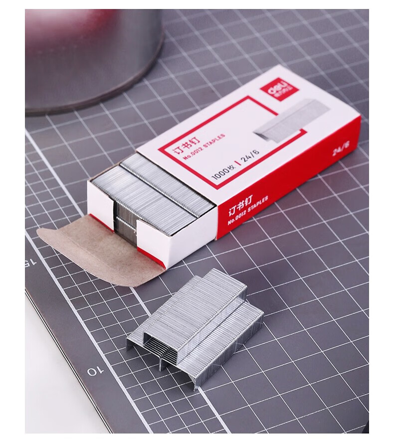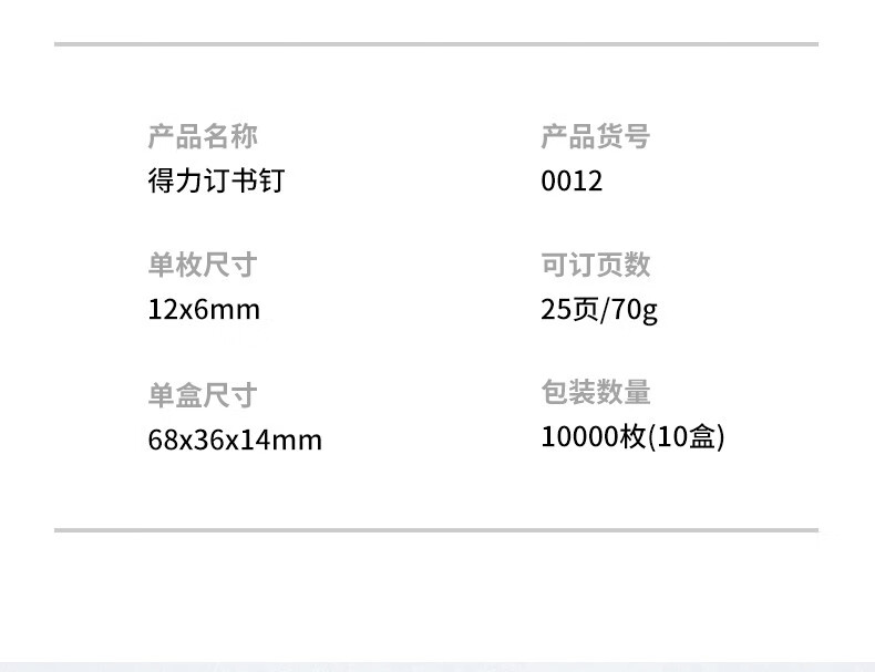 商品名稱:得力0012 高強度訂書釘 12#訂書針 1000枚/盒 10盒裝 辦公用品