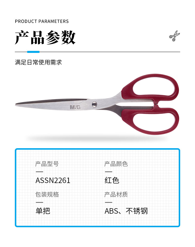 商品名稱:晨光ASSN2261 剪刀 210mm大號手工剪紙刀 辦公用品 紅色 單把裝