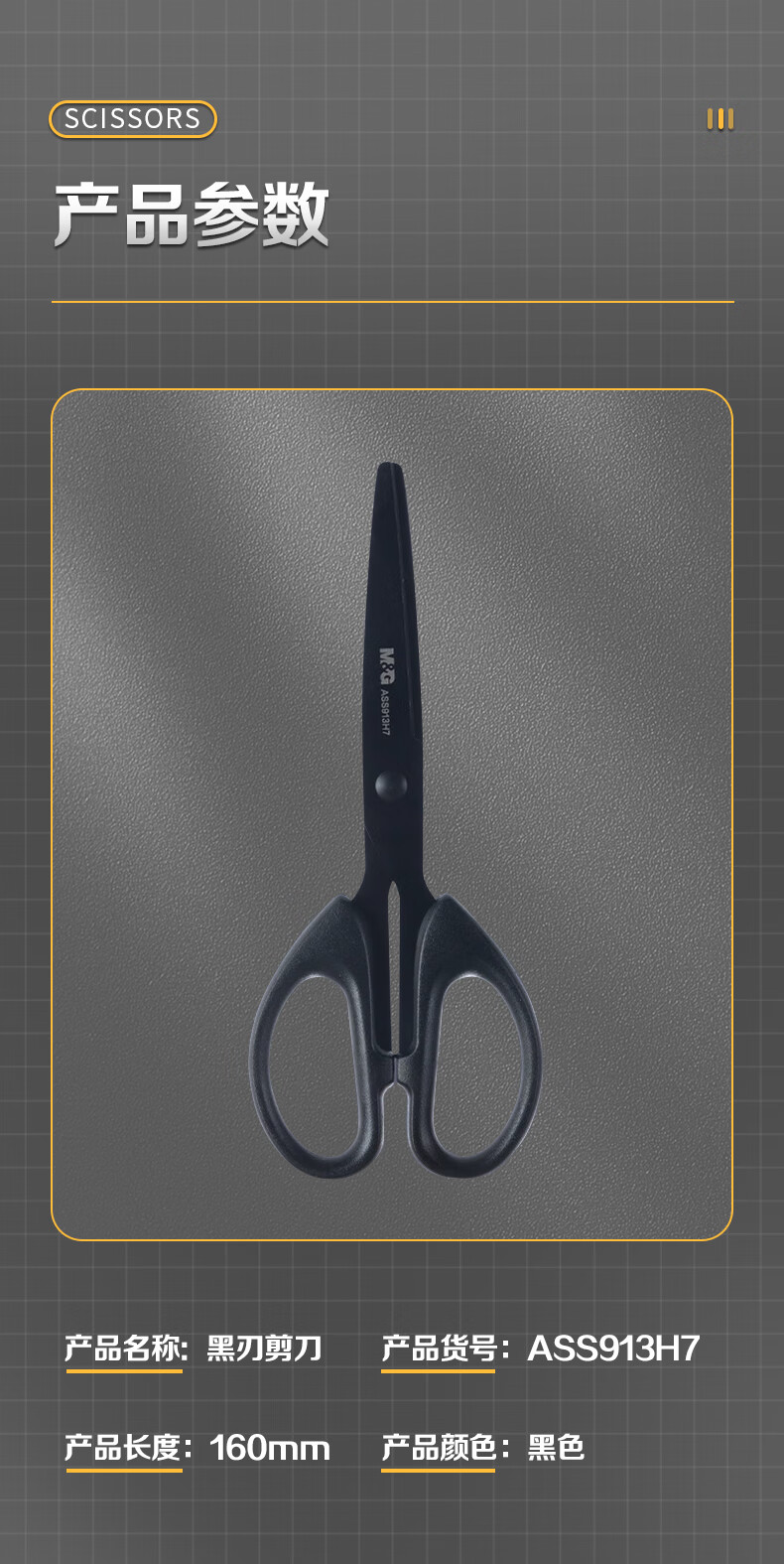 商品名稱:晨光ASS913H7 黑刃剪刀 160mm不銹鋼刀刃不易粘膠耐用剪刀 單把裝