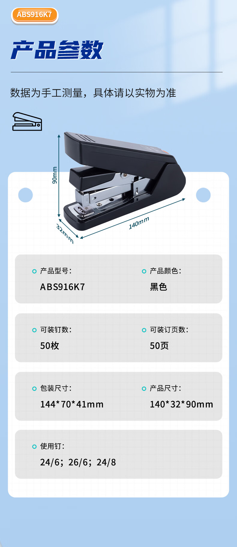 商品名稱:晨光ABS916K7 12#厚層訂書機(jī) 商務(wù)型省力訂書器 單個裝
