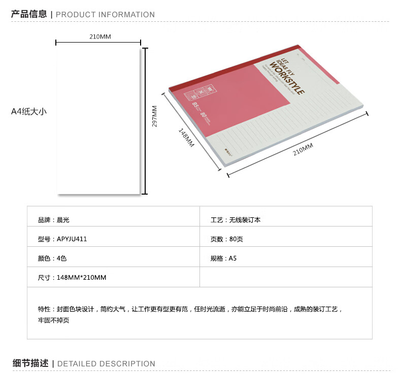 商品名稱:晨光APYJU411 軟抄本 A5/80頁(yè)無(wú)線裝訂本記事本筆記本單線本 顏色隨機(jī) 單本裝