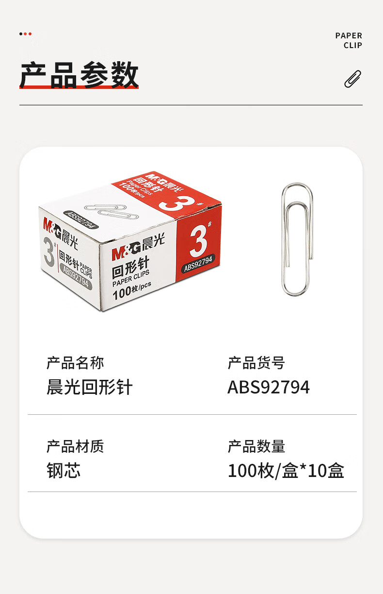 商品名稱:晨光ABS92794 鍍鎳回形針 3#金屬防銹曲別針 辦公用品 100枚/盒 10盒裝