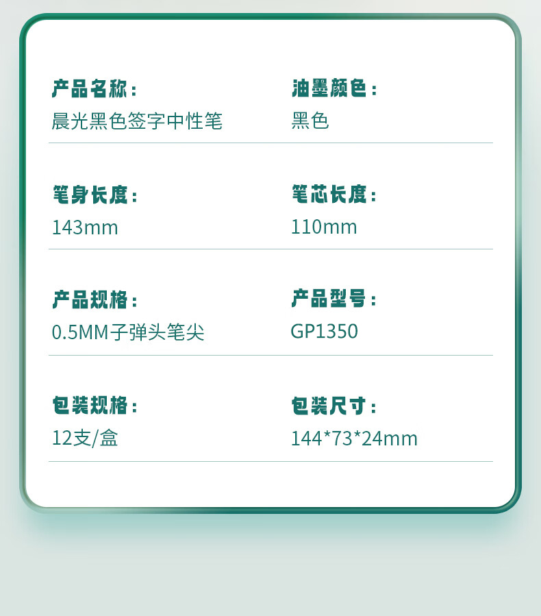 商品名稱:晨光GP1350 黑色中性筆 0.5mm經(jīng)典子彈頭簽字筆 辦公水筆 12支/盒