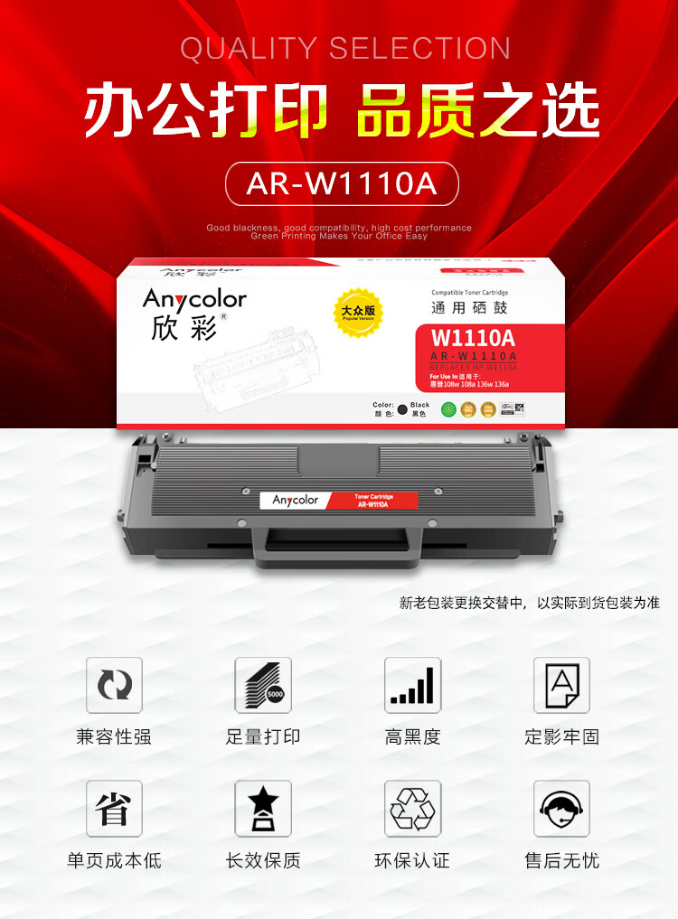 商品名稱:欣彩AR-W1110A硒鼓 大眾版帶芯片1.5K 適用惠普W1110A 110A 108a 108w MFP 136a 136w 136nw 138p激光打印機(jī)