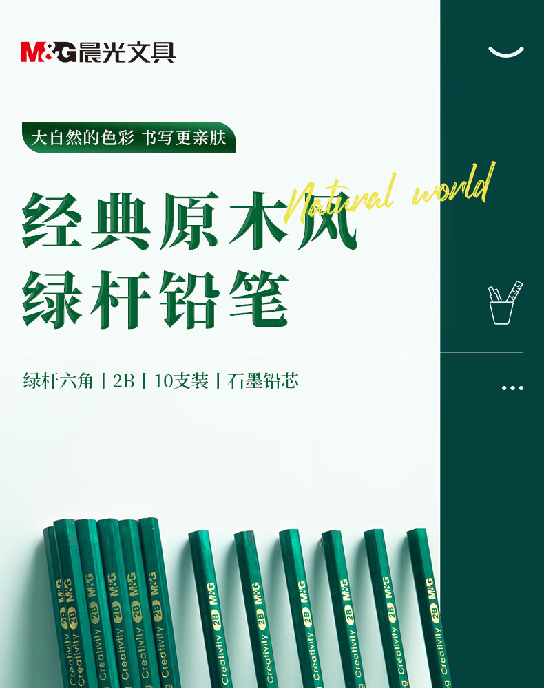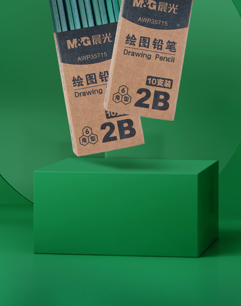 商品名稱:晨光AWP35715 2B鉛筆 經(jīng)典綠桿六角木桿鉛筆 10支/盒