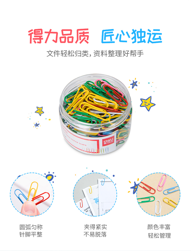 商品名稱:得力0038 彩色回形針 3#29mm金屬曲別針 辦公用品 160枚/筒