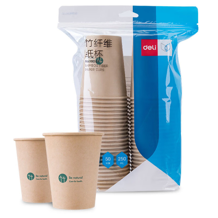 商品名稱:得力19207 一次性紙杯 250m竹纖維本色杯子/水杯 加厚隔熱 50只/袋