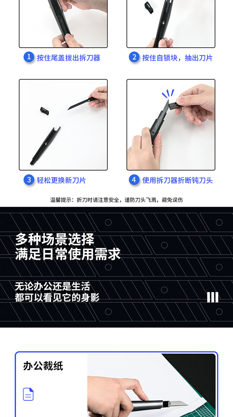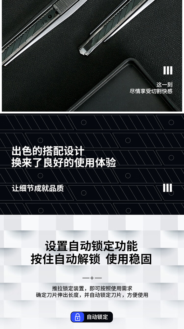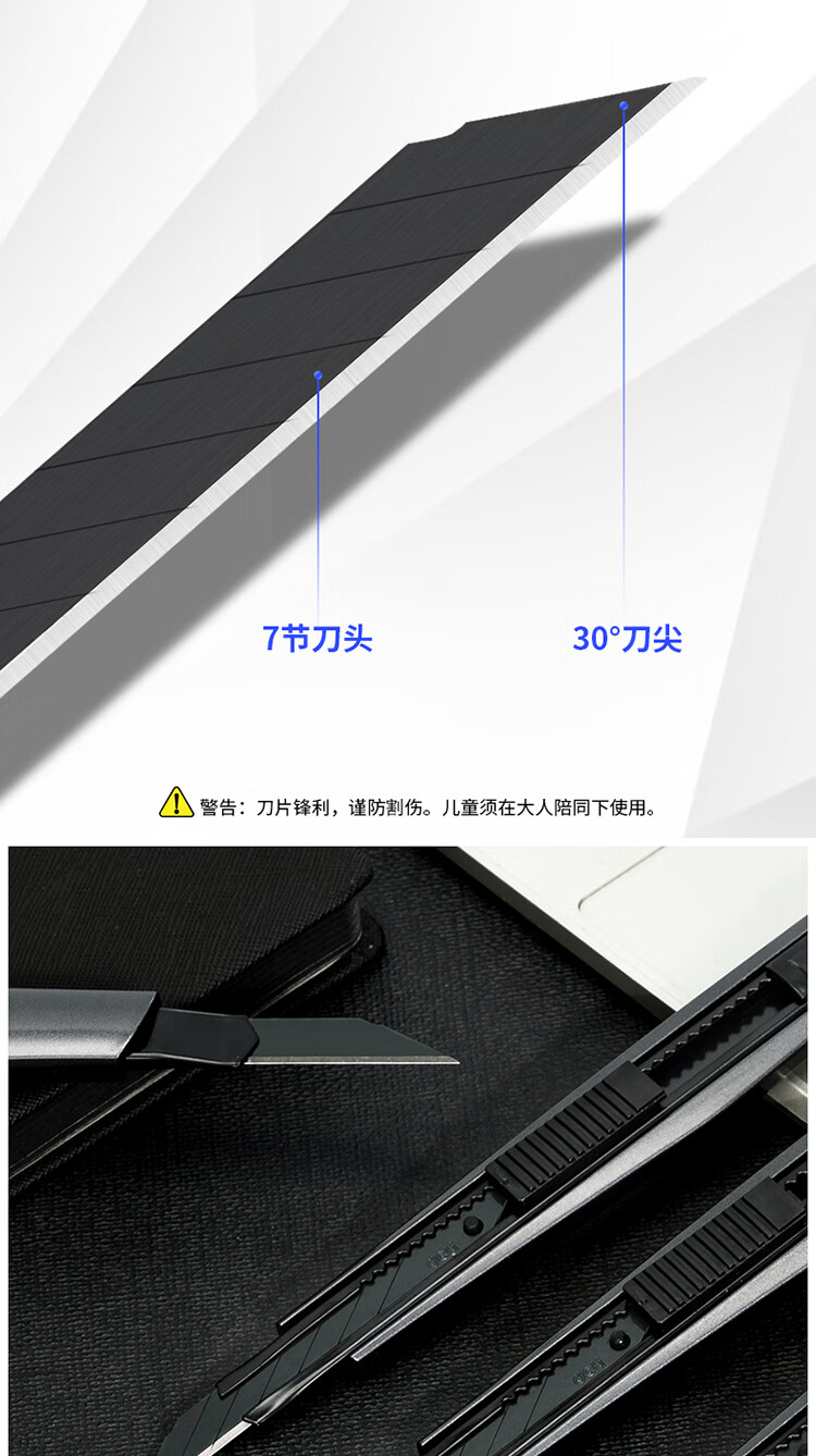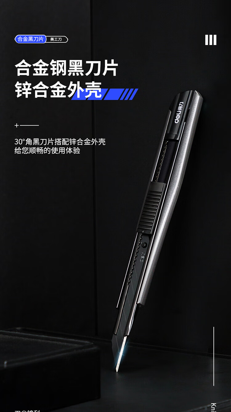 商品名稱:得力2037S 小號美工刀 30°黑刀刃鋅合金裁紙刀/壁紙刀 單位:把