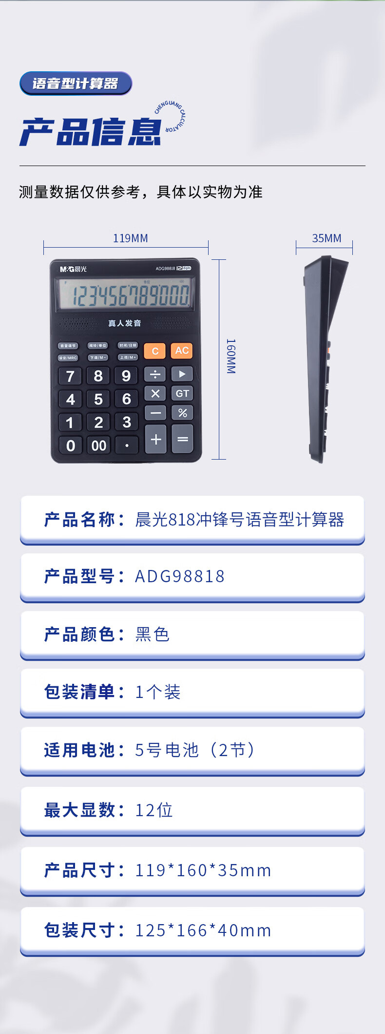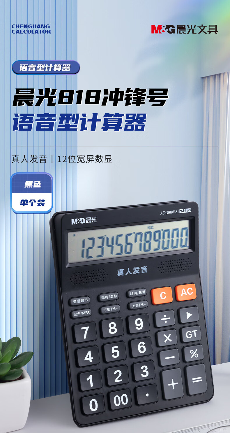 商品名稱:晨光ADG98818 語音型計算器 818沖鋒號計算機 黑色單個裝