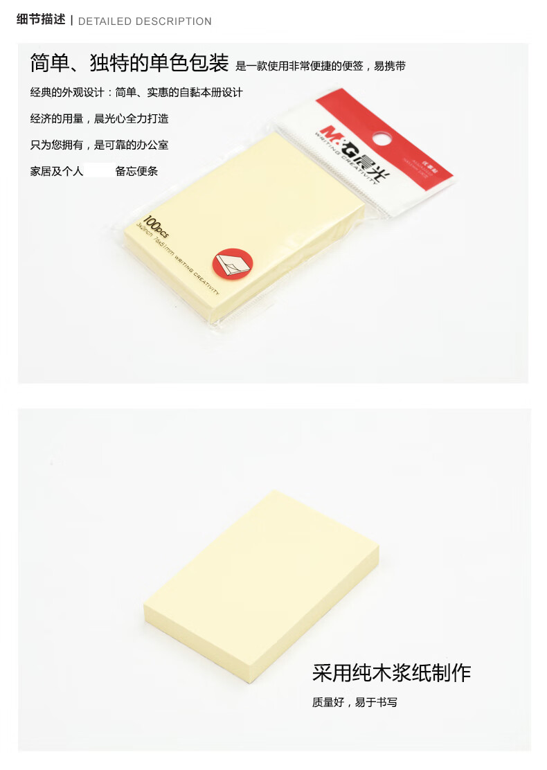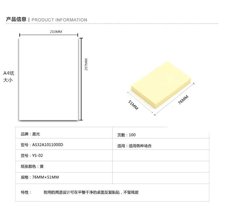 商品名稱:晨光YS-02 單色便利貼 3X2優(yōu)事貼 100頁自粘便利貼便簽紙 76X51mm 單位:本