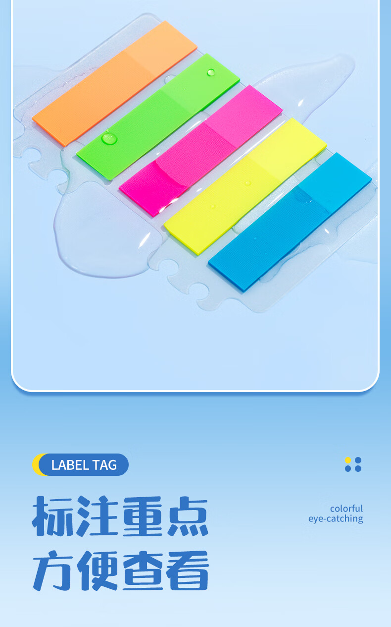 商品名稱:晨光YS-20 熒光便利貼 5色100枚PET粘性姓名貼 記事留言貼優(yōu)事貼 單位:包