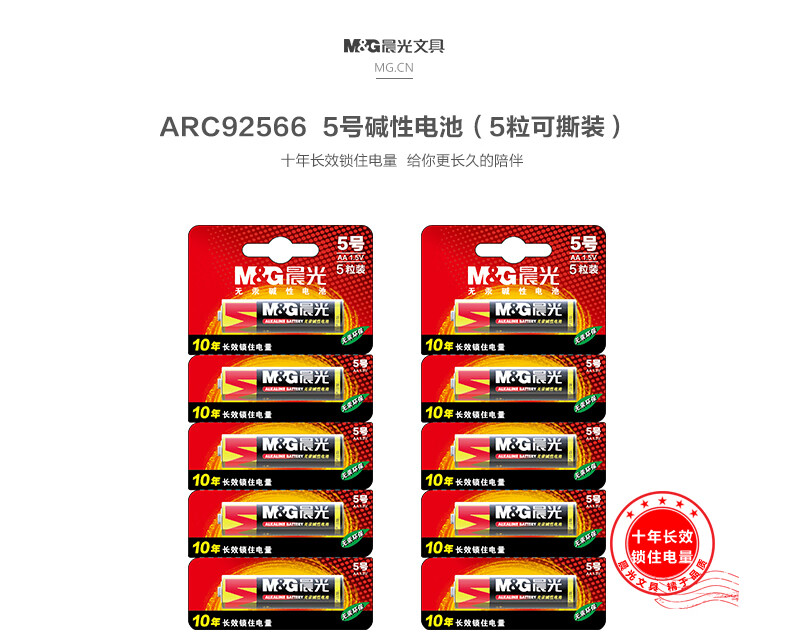 商品名稱:晨光ARC92566 5號(hào)堿性電池 可撕裝 5粒/卡