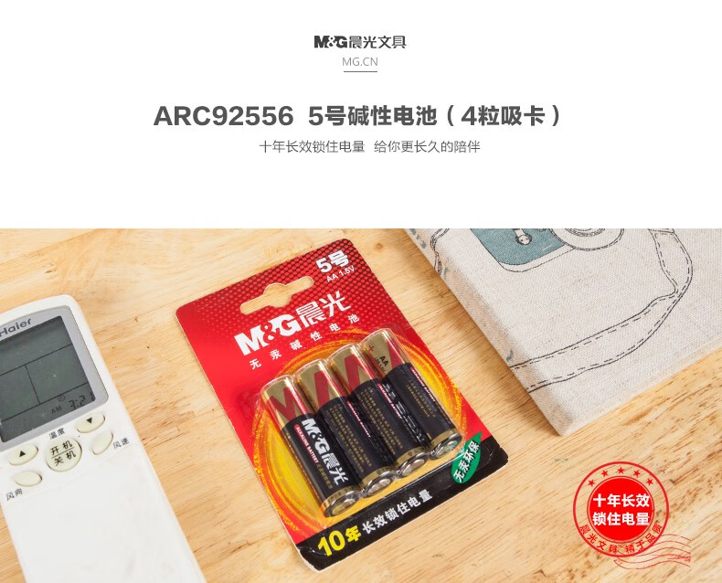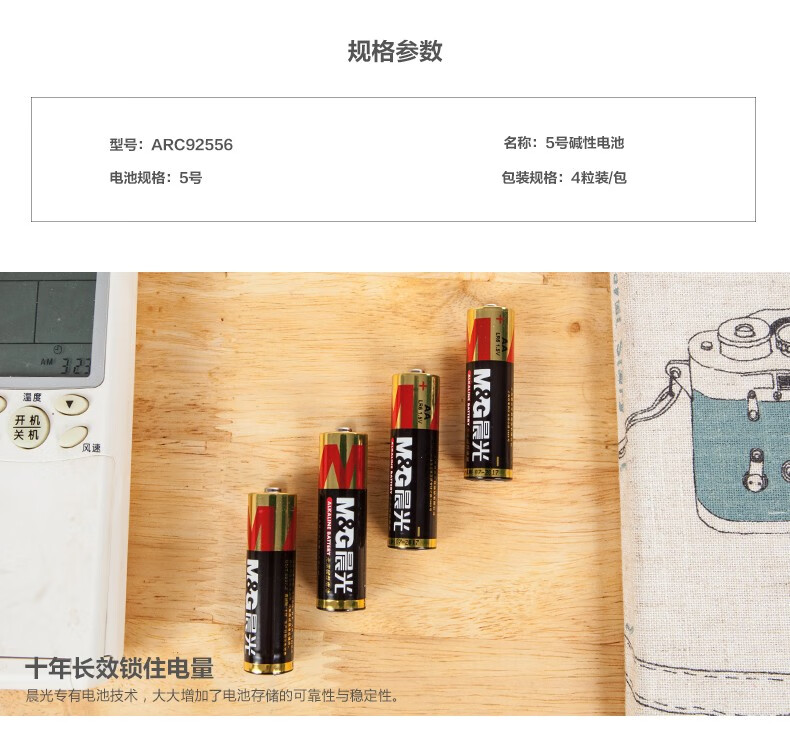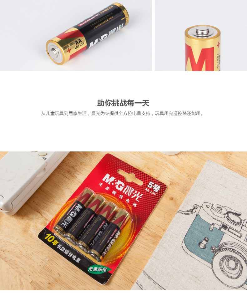 商品名稱:晨光ARC92556 5號電池 兒童玩具遙控器鼠標(biāo)無汞堿性電池 4粒/卡