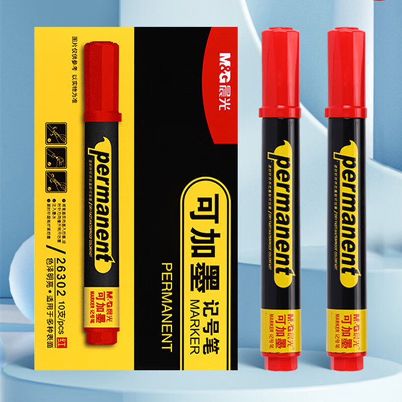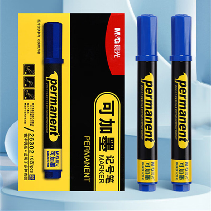 商品名稱(chēng):晨光可加墨記號(hào)筆 油性大頭筆 單頭標(biāo)記筆物流筆 10支裝APM26302