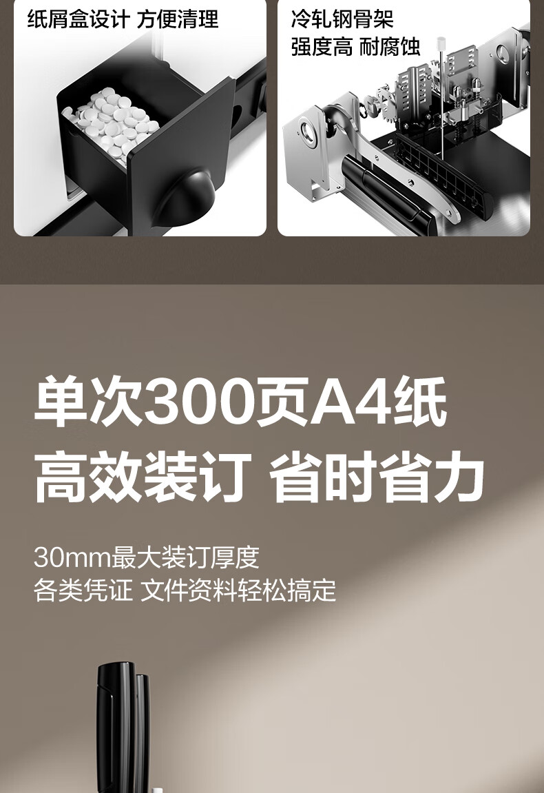 商品名稱:得力30mm熱熔手動(dòng)裝訂機(jī) 300頁財(cái)務(wù)裝訂機(jī)手動(dòng)打孔機(jī)33015