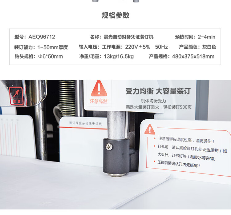 商品名稱:晨光自動(dòng)財(cái)務(wù)憑證裝訂機(jī) 膠圈裝訂機(jī) 夾條打孔機(jī) 單臺(tái)裝AEQ96712
