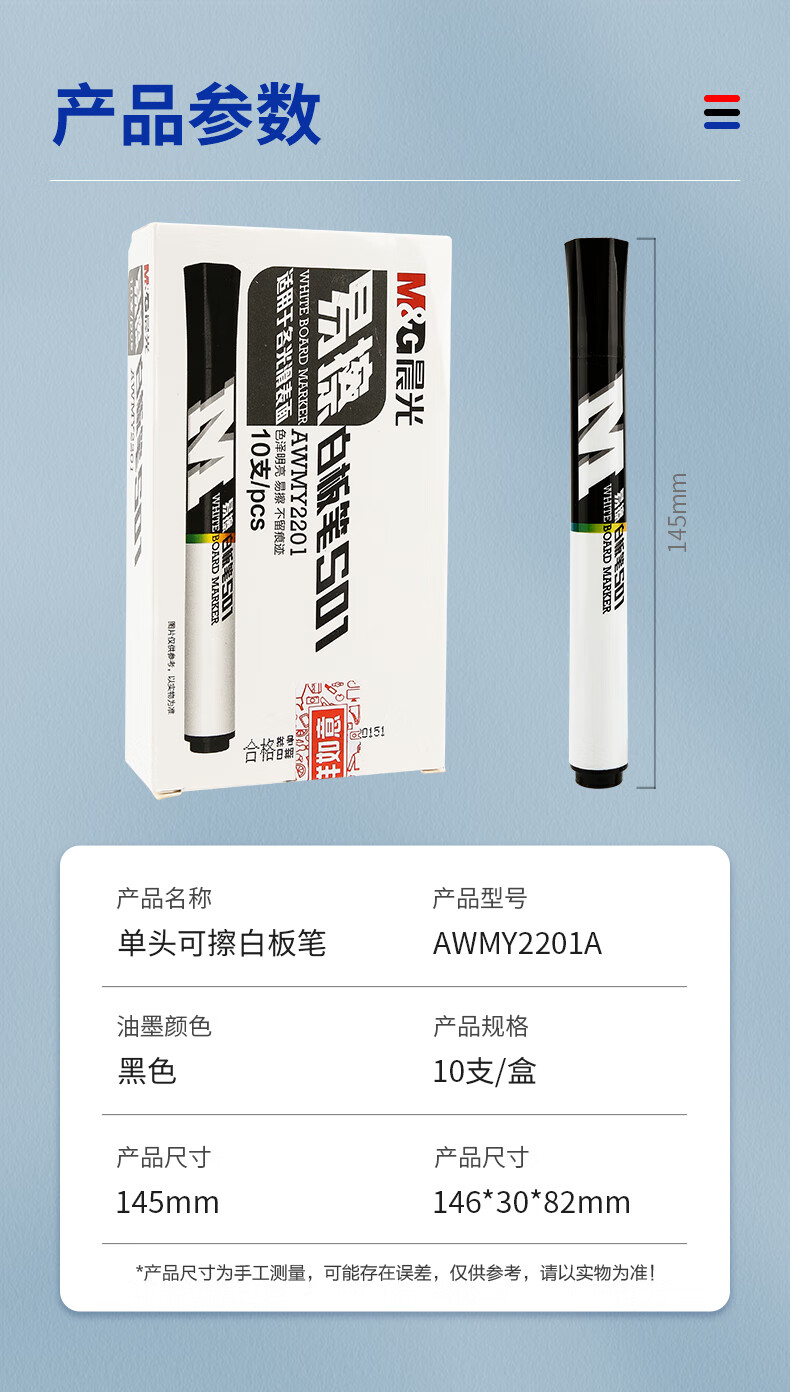 商品名稱:晨光AWMY2201 可擦白板筆 D10升級(jí)款單頭辦公會(huì)議筆 易擦白板筆 10支/盒