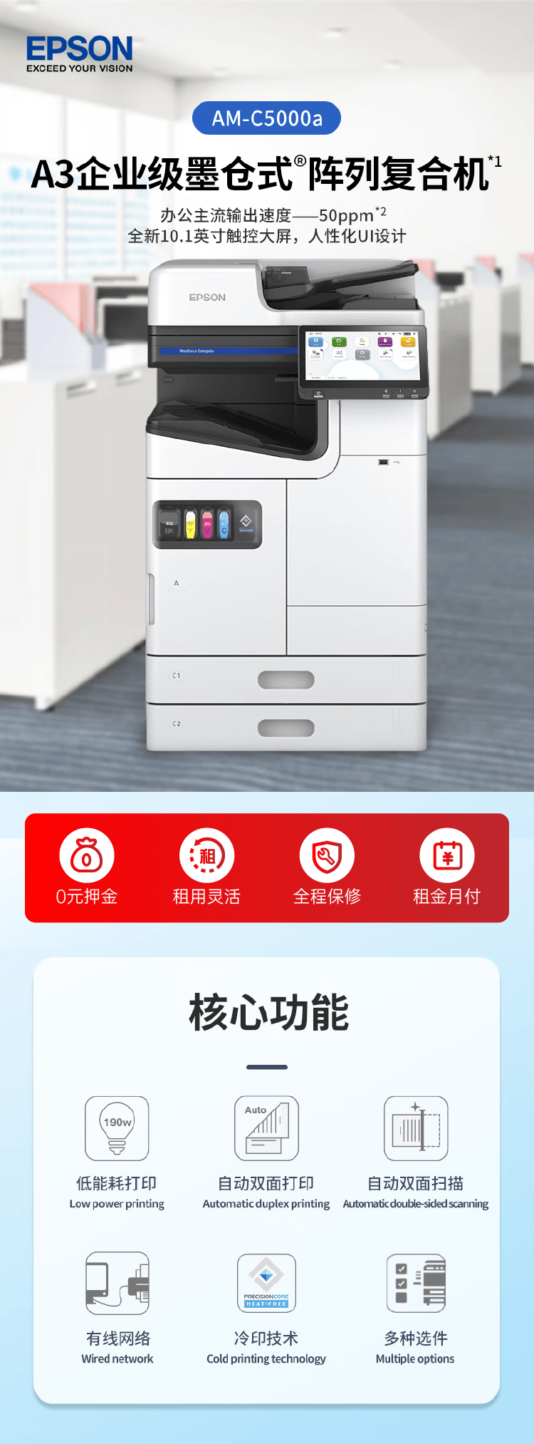 商品名稱:愛普生全新復(fù)印機(jī)租賃 茂 名一體機(jī)打印機(jī)出租(月)